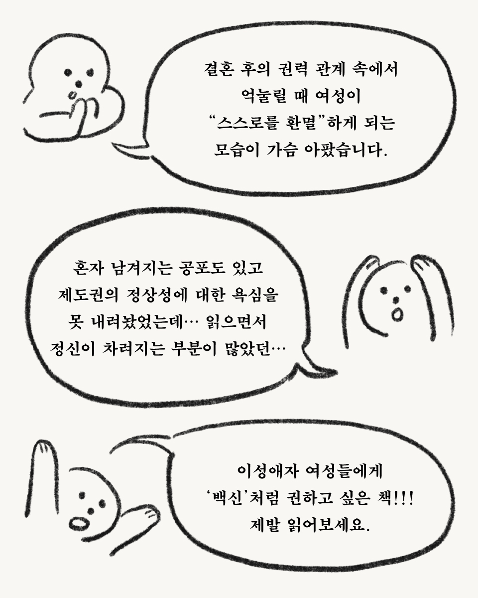 각 권에 대해 클럽원들이 자유 감상과 고민을 나눈 1부, 진행자 발제에 따라 논의를 심화한 2부로 공감과 격정의 마무리!여성혐오를 말살하고 싶은 페미니스트 북클럽, ⧼여혐 말살 클럽⧽은 계속됩니다😎