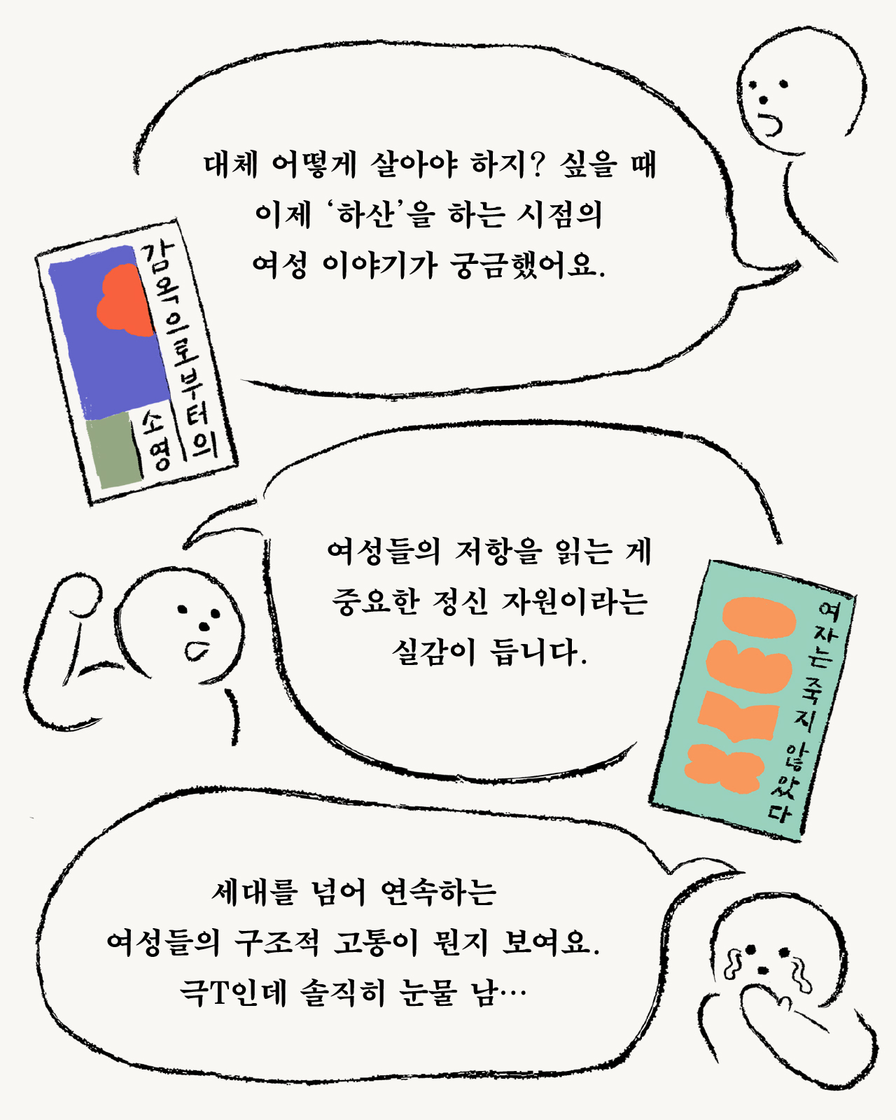 『감옥으로부터의 소영』 『여자는 죽지 않았다』를 통해서는 선배 세대의 생존법을 들여다보았습니다.