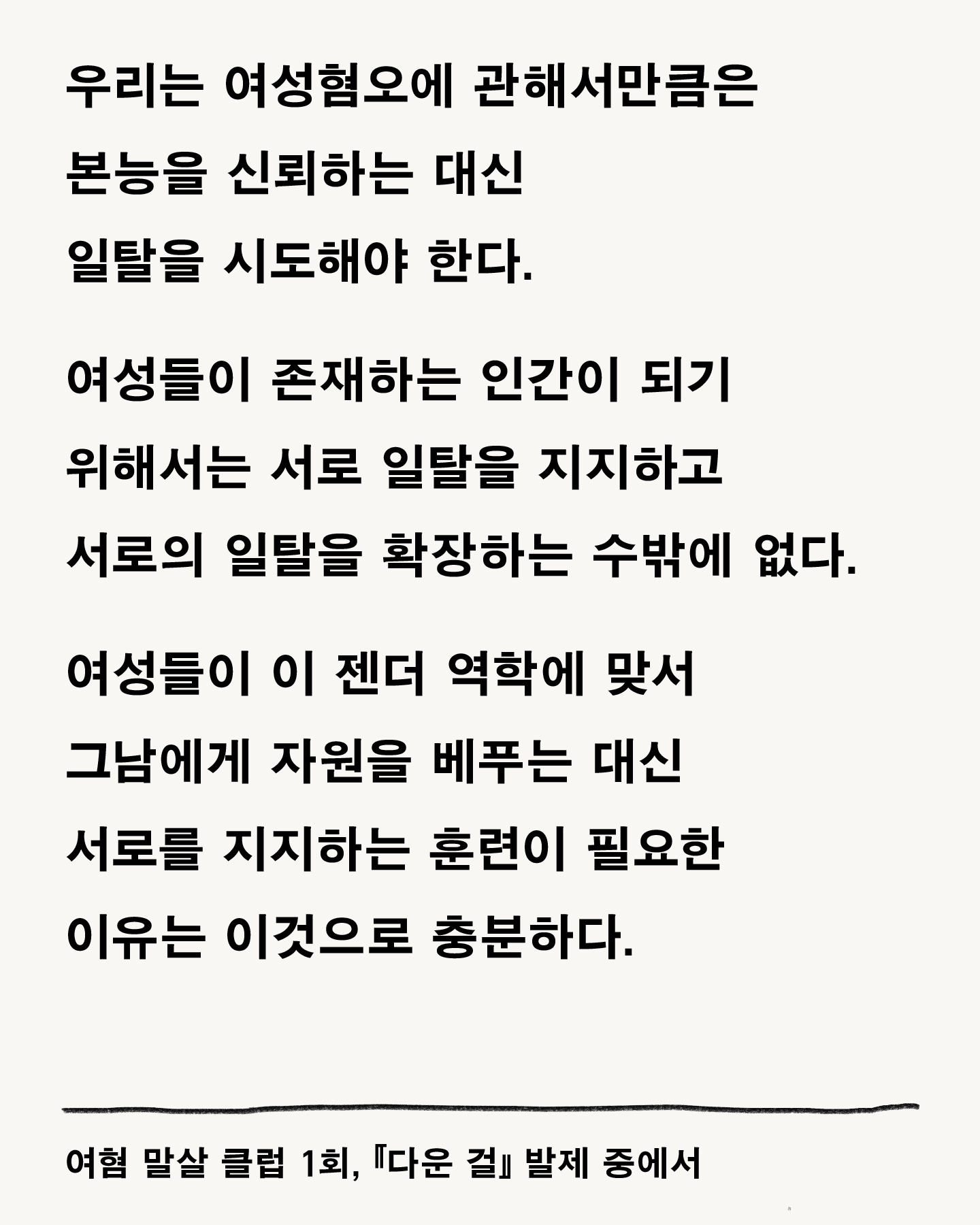 사회적 여성혐오의 ‘작동 원리’ 그리고 여성의 저항으로 이 작동이 멈추는 지점과 가능성까지 함께 이야기 나눴어요.