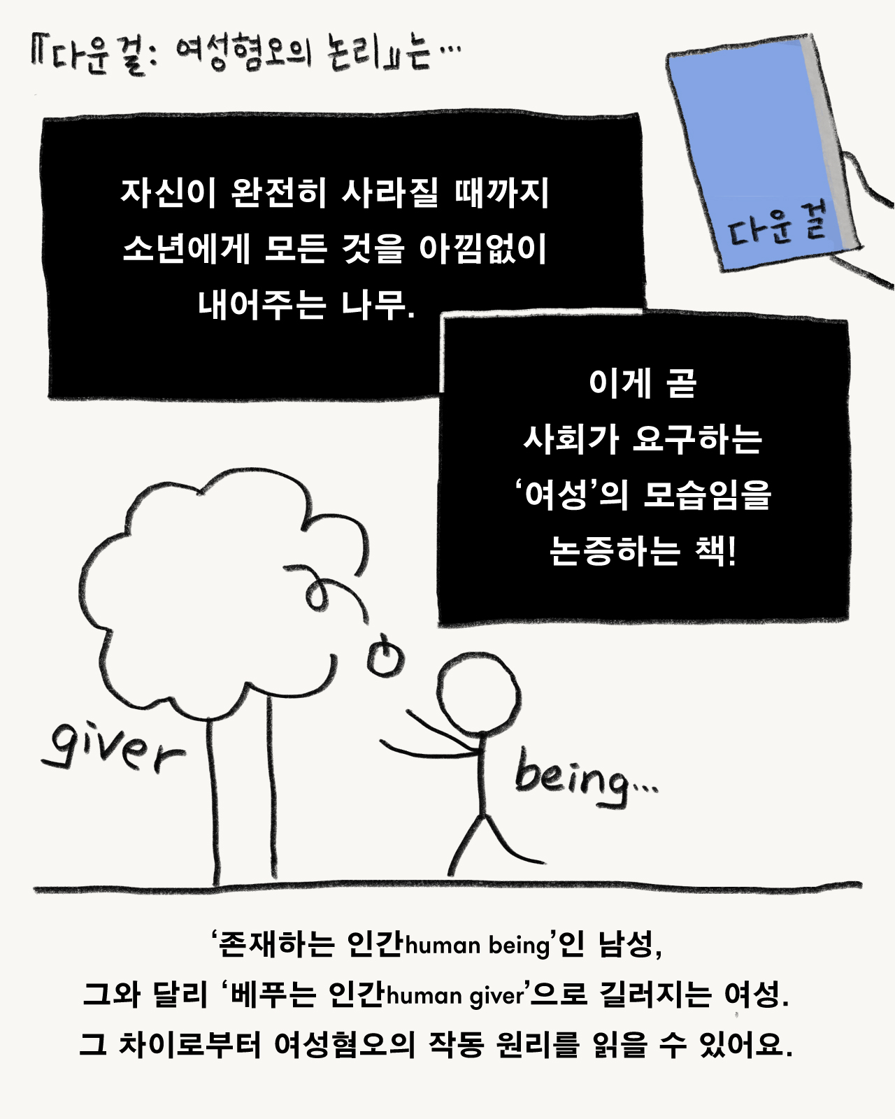 여성혐오의 정치적 작용을 폭넓게 탐구한 책으로, 남성들이 마땅히 ‘취해야 하는 모든 것’─관심, 친절, 애정, 존경, 쾌락, 쾌적한 생활, 사회적 명망과 재화─를 감히 내어주지 않거나 스스로 가지려 하는 여성을 향한 적개심과 단속─얕보기, 조롱, 의심, 희롱, 성애화, 탈성애화, 악마화, 침묵시키기, 따돌리기, 폭행과 살해까지─이 곧 여성혐오임을 보여줍니다.